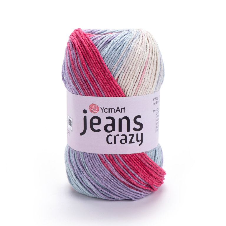 Fir de tricotat / crosetat YarnArt Jeans Crazy este un fir cu efect colorat, ideal pentru proiecte de tricotat sau croșetat vesele și moderne în special în sezonul de primăvară‑vară